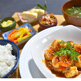 Sweet and sour chilli fried shrimp. Side dishes ...
